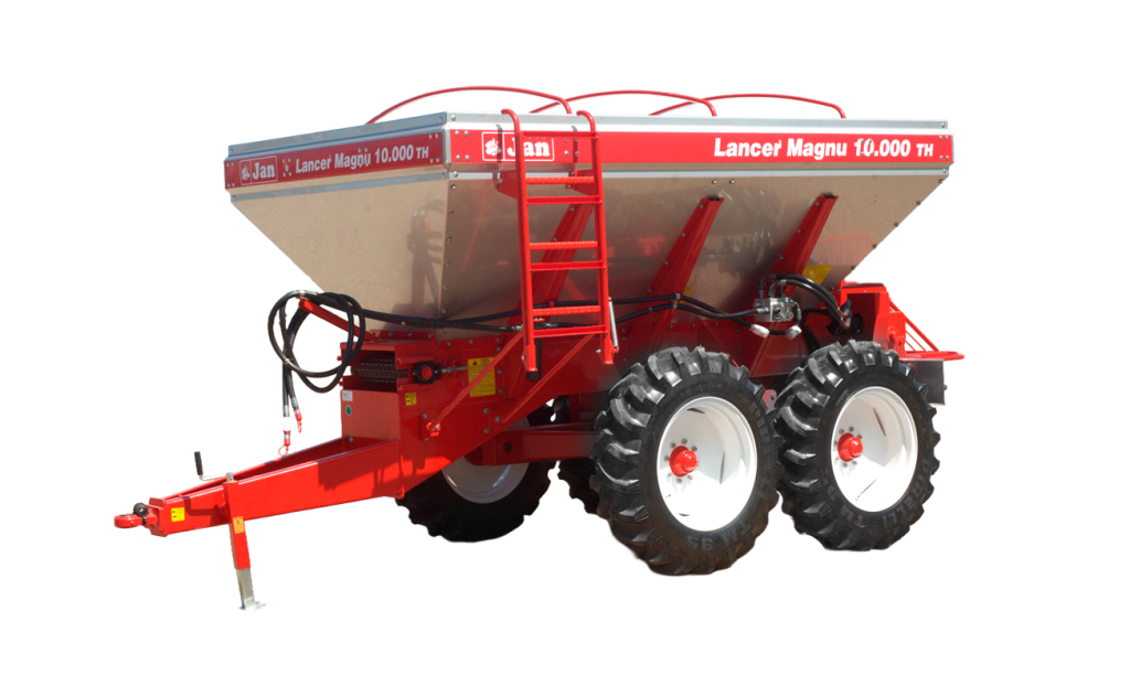Lancer Magnu 10.000 TH INOX é a versão mais completa e resistente da linha Magnu 10.000. Equipado com Transmissão Hidráulica Independente (TH) e estrutura 100% em aço inoxidável, esse modelo entrega controle preciso de aplicação e alta resistência a insumos corrosivos, como fertilizantes químicos, calcário, gesso e pós minerais.