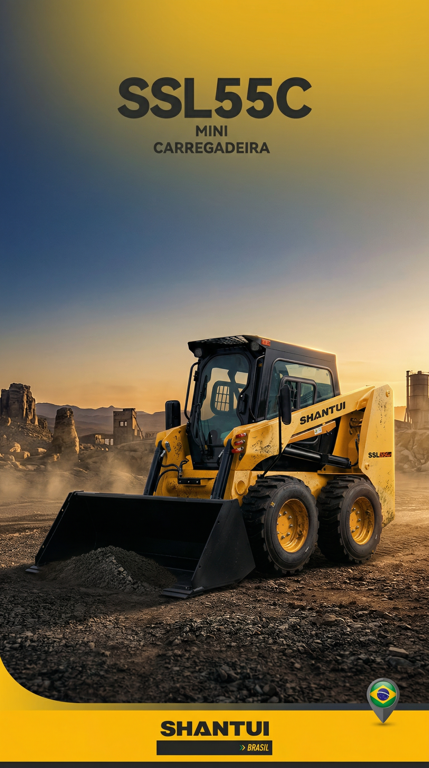 A Shantui SSL55C, distribuída pela Centro Oeste Implementos, é uma mini carregadeira projetada para oferecer agilidade e versatilidade em construção municipal, manutenção de estradas, manuseio de portos e operações em espaços confinados.