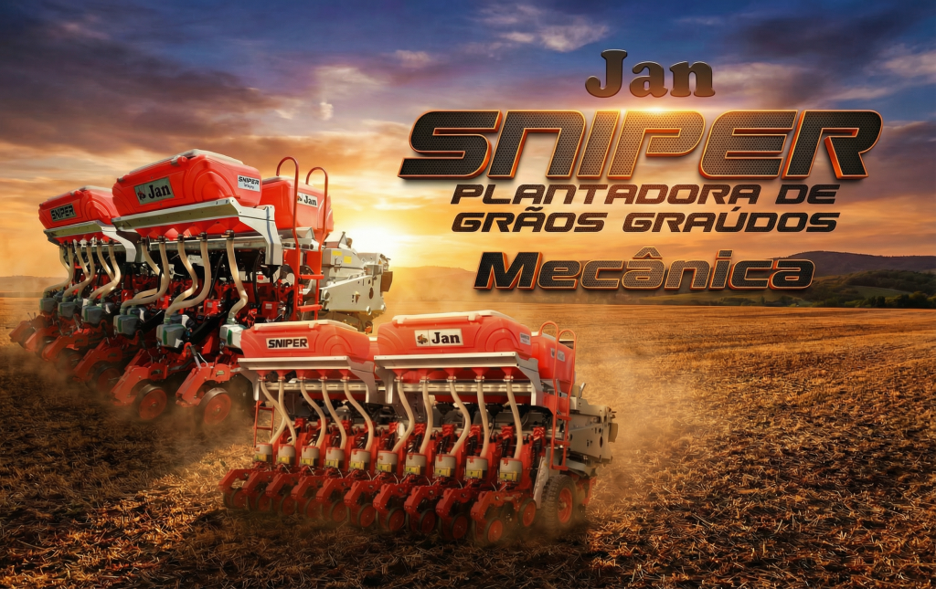 A Sniper Plantadora Mecânica, desenvolvida pela JAN, é uma plantadora de precisão projetada para o plantio direto de grãos graúdos como soja, milho e feijão, oferecendo uniformidade excepcional e produtividade otimizada em terrenos irregulares. Com linhas pantográficas e espaçamento configurável de 45 ou 50 cm, ela se adapta perfeitamente a curvas de nível e topografias onduladas.